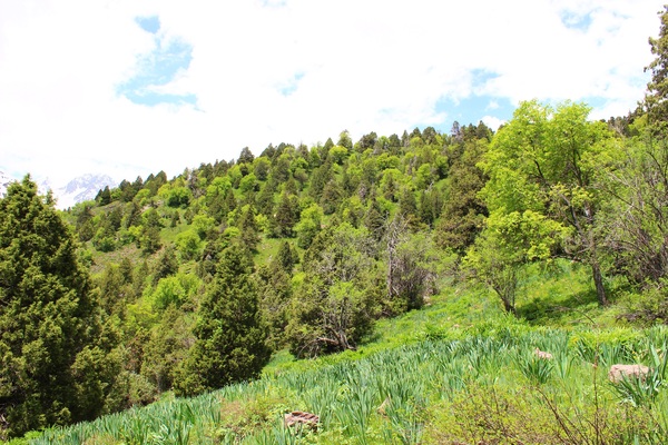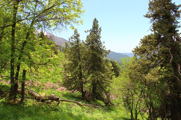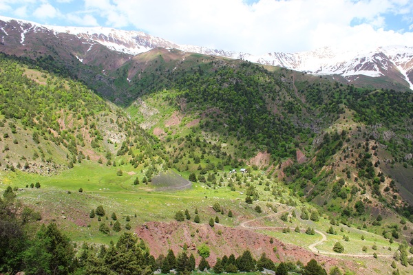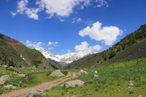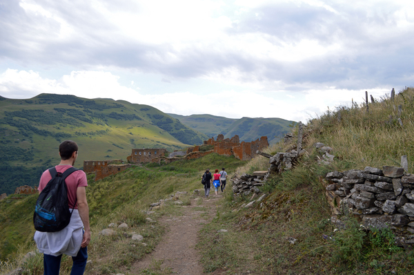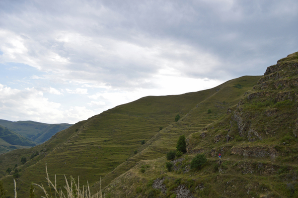 Весь дальнейший путь - по тропинке через три горы. Приглядитесь, по тропинке идет моя подруга.