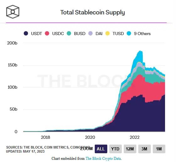 USDT компании Tether является крупнейшим стейблкоином на рынке, с предложением более 83 миллиардов токенов, согласно данным The Block's Data Dashboard.