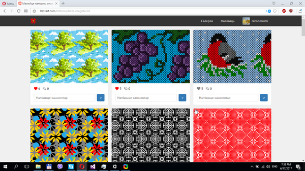 Так выглядит галерея. Тут хотелось сделать что-то вроде сообщества, с лайками, подписками, комментариями. Все это есть, есть и вход через соцсети. Много писать не буду, надеюсь, что все и так интуитивно понятно.