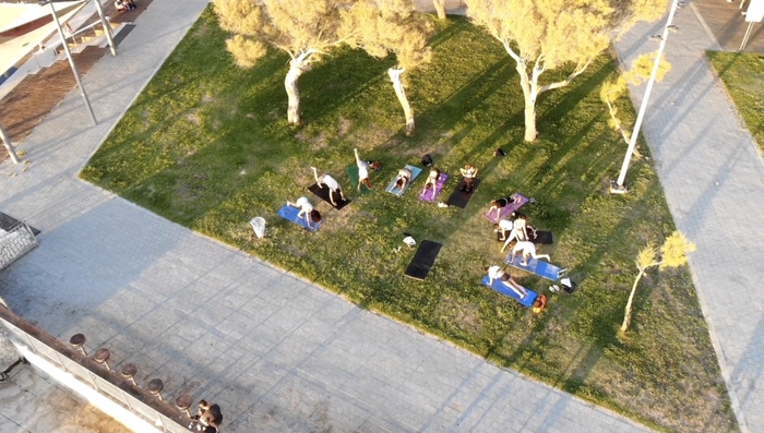 Видео, снятое камерой дрона у берегов Хайфы: большая стая крупных акул преследует косяк рыбы.