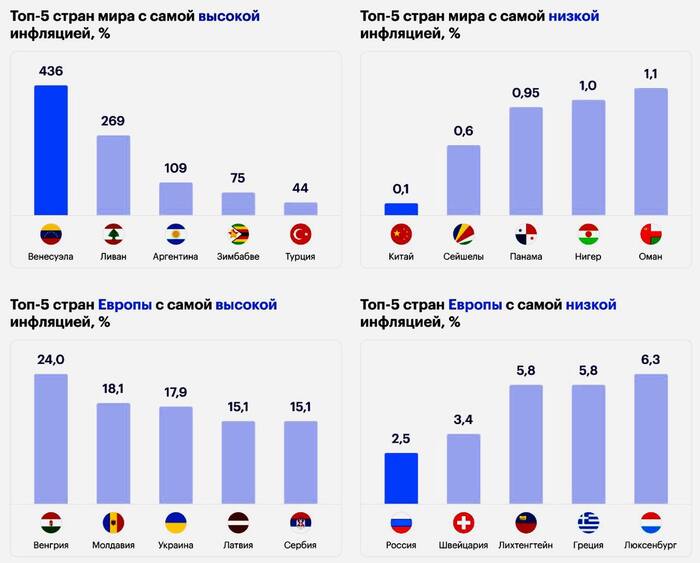 Среди лидеров по снижению инфляции - Китай, подошедший в дефляцией (обратный процесс, когда цены снижаются).
