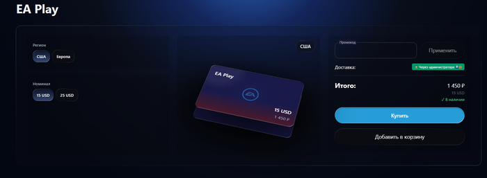 Поэтому для пользователей из России пополнение EA часто рассматривается как самый удобный способ оформить EA Play без рисков отказа платежа и проблем с банковскими картами.