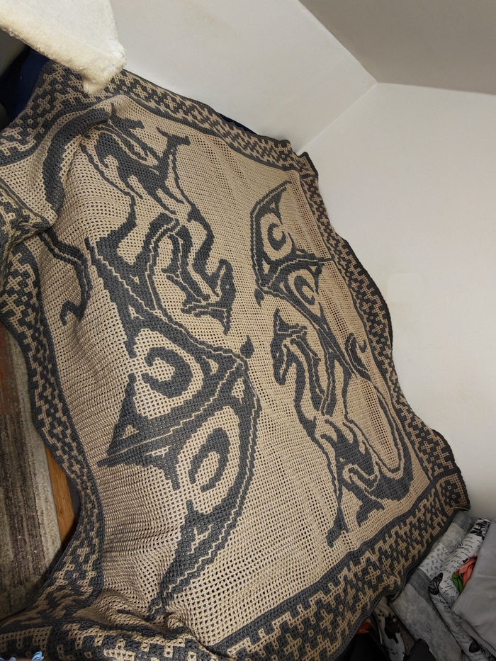 Три года вязала этот плед. Правда с перерывами на лето ибо летом вязать его очень жарко.
