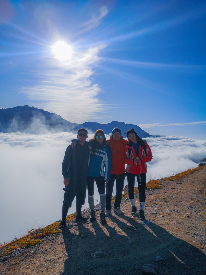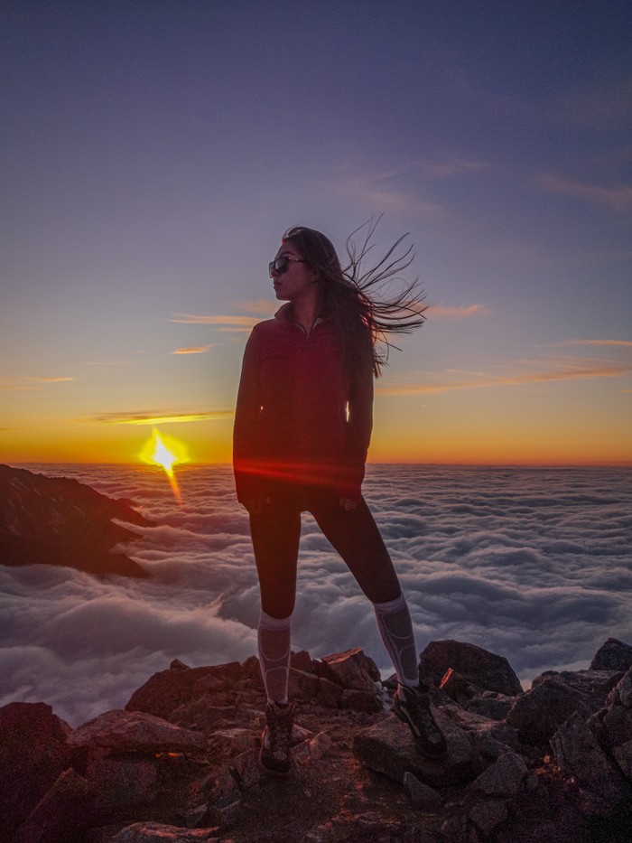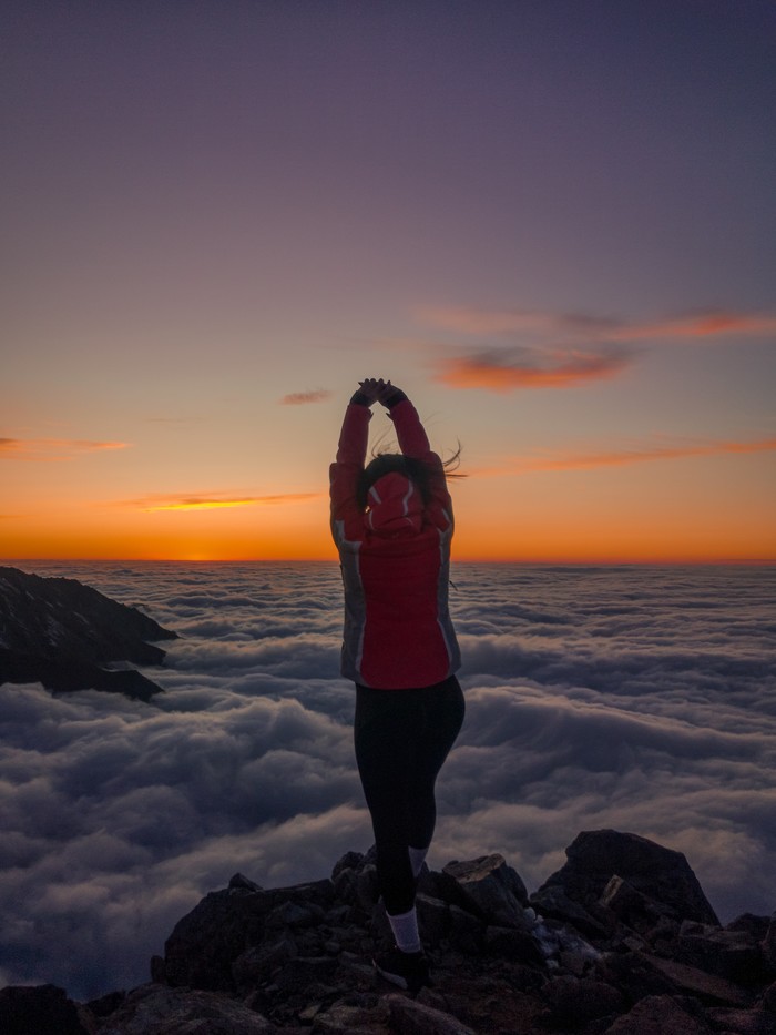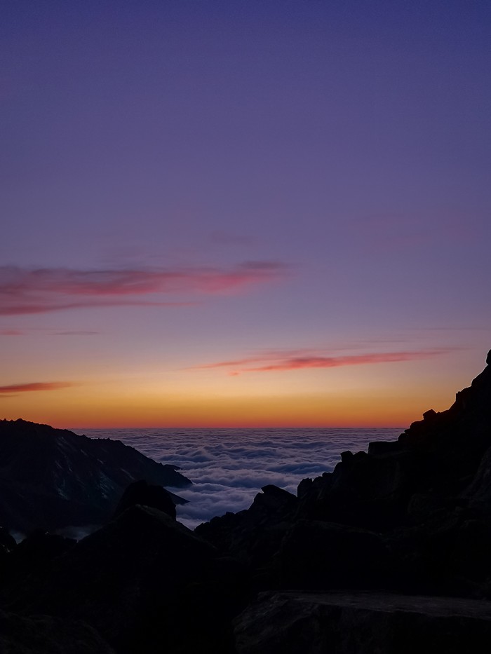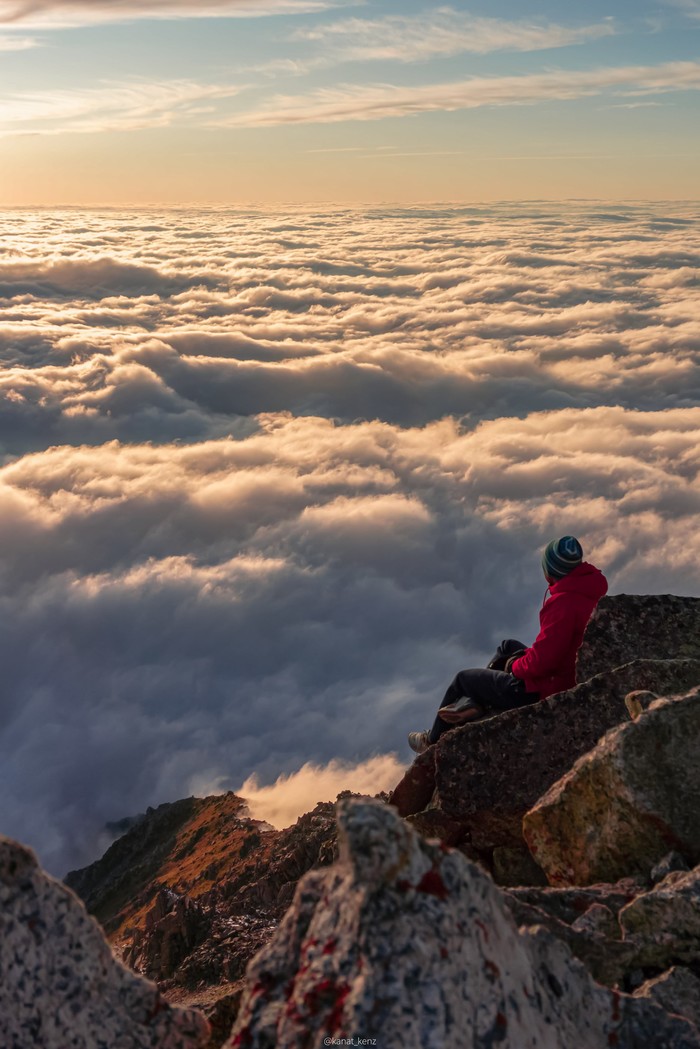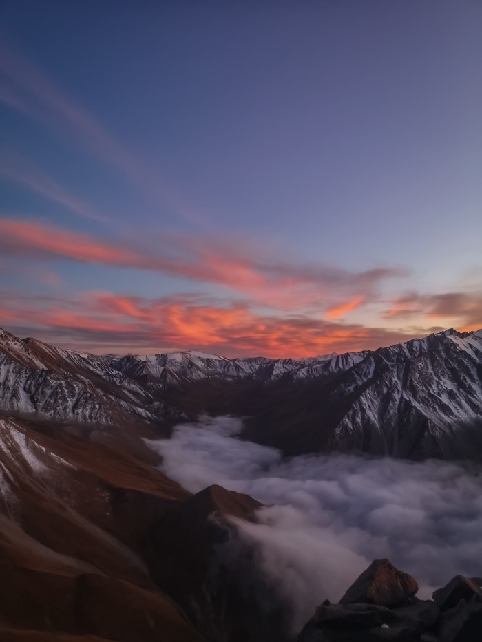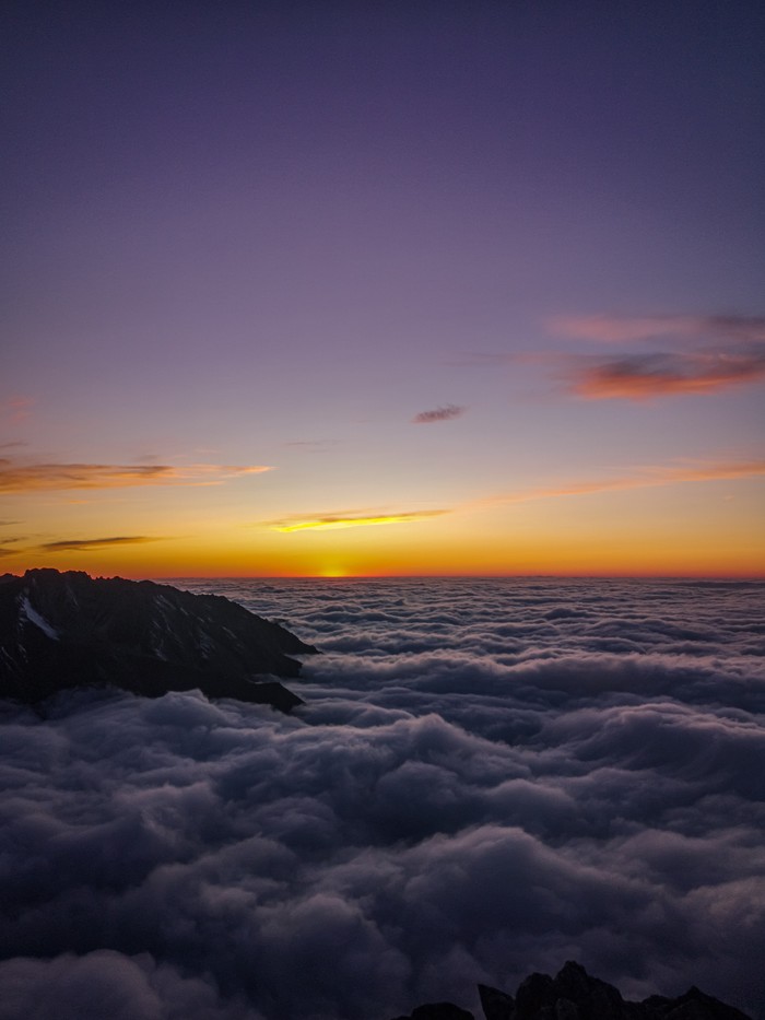 Закат выше облаков на большом Алматинском пике