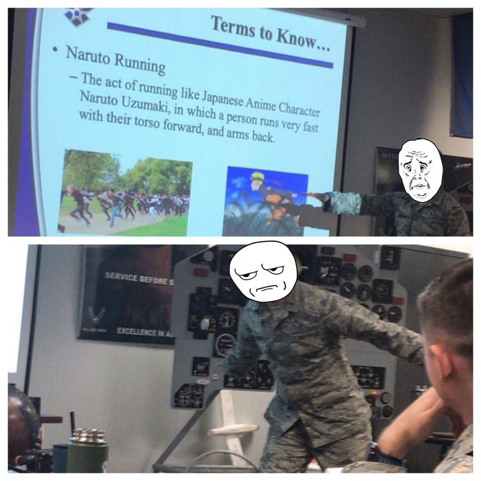 Смысл в том, что это очень узкоспециализированный бег. Он нужен для плавности, бесшумности и малозаметности. Ведь бегущий шиноби наклоняется низко и его труднее заметить и , конечно, пристрелить. Казалось бы, вот оно, для штурма зоны как раз это и нужно! Но есть огромная проблема: если ты не жил в деревне скрытого чего-нибудь, то так бегать ты скорее всего не умеешь. А это весьма и весьма непростая техника, требующая постоянных тренировок и выносливости. Так что для бега Наруто остаётся лишь одна причина: