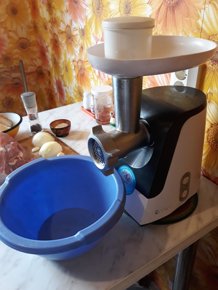 Далее воспользуемся старой но надежной мясорубкой. Взял её по акции в подарок как довесок к дорогущему моющему пылесосу. Пылесос давно на свалке, а вот на мясорубку не нарадуюсь до сих пор.