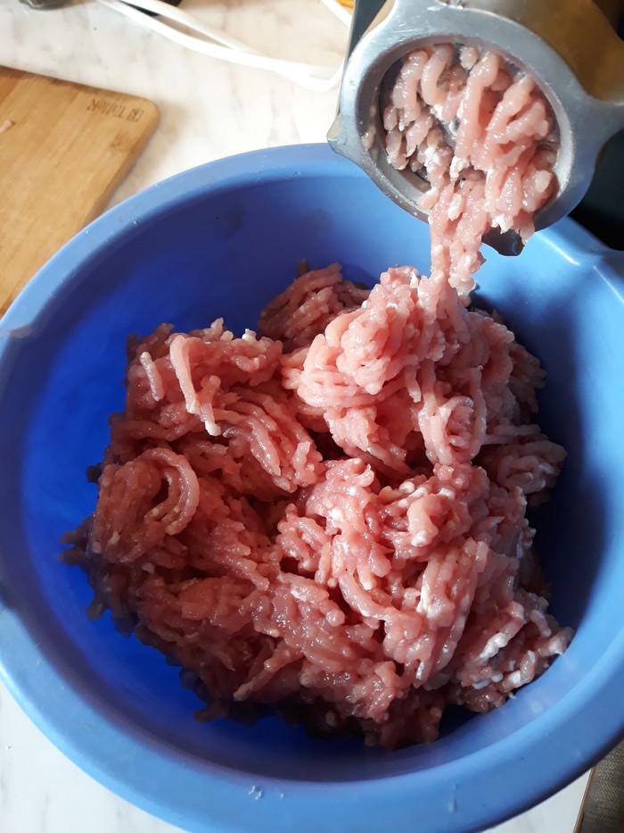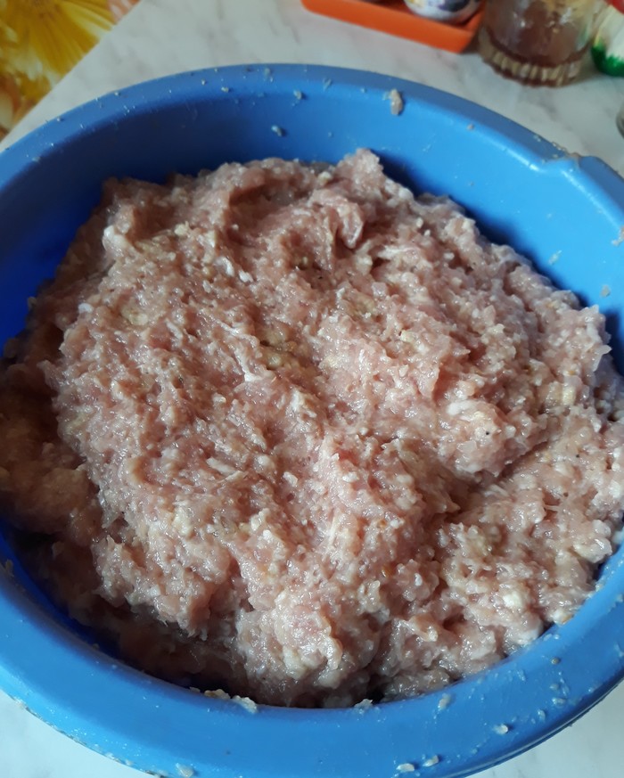 Так выглядит чисто мясной фарш. Его можно отложить на фрикадельки или еще для чего.