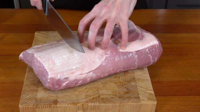 Первым делом поделила кусок на три части, вес каждой из которых составил около 700 г.