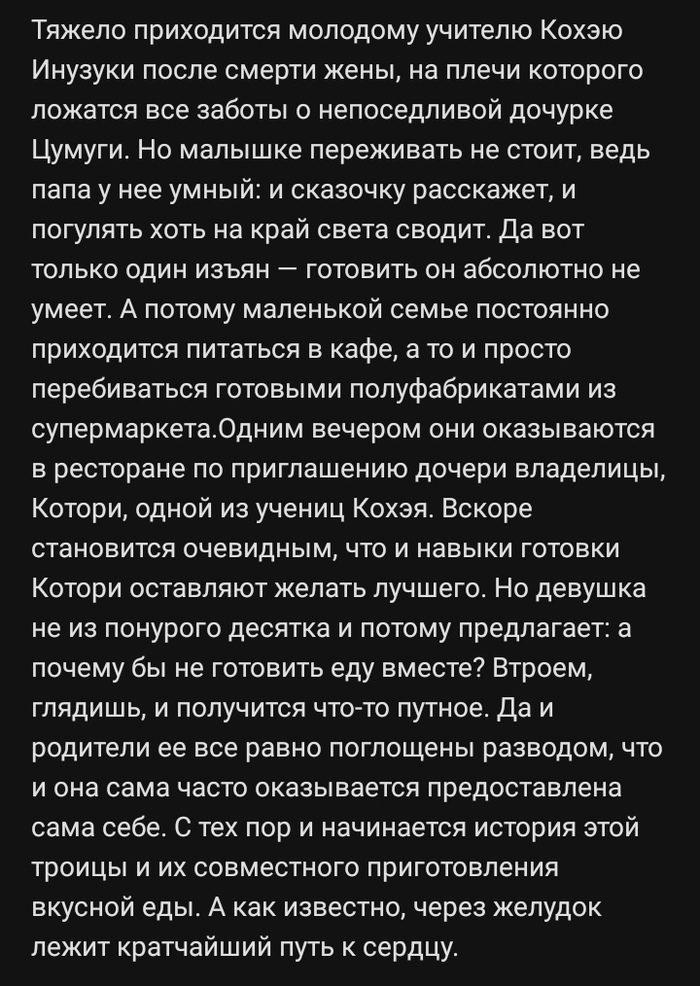 Собственное мнение: мне достаточно понравилось это аниме, не смотря на жанр повседневность, так как мне не нравятся аниме в этом жанре. Смотреть или нет - выбор за вами!