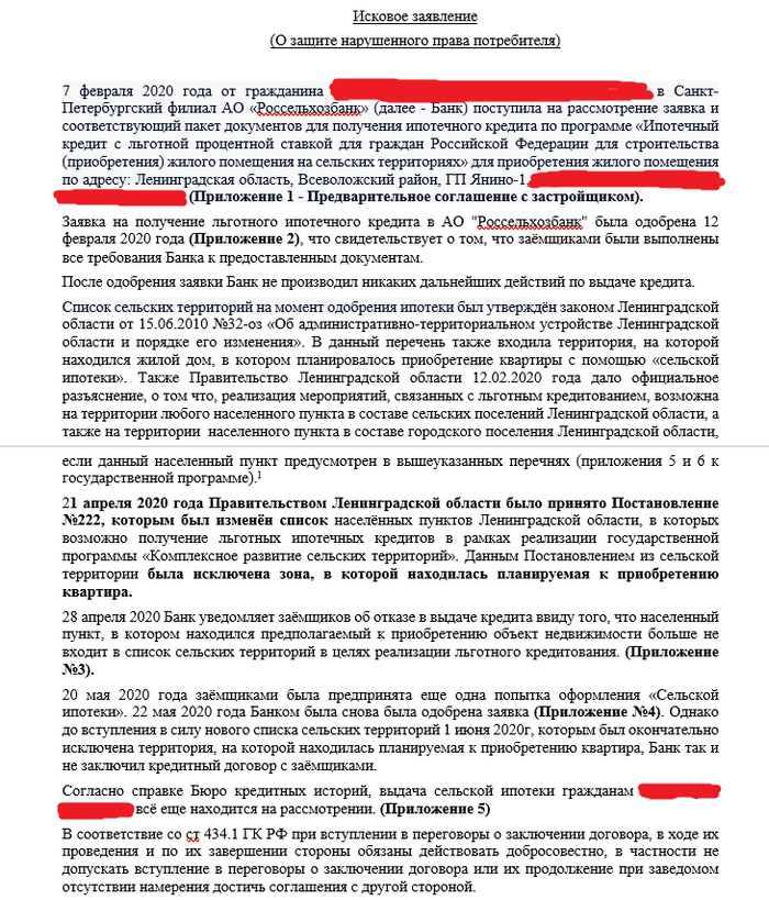 - Наконец, собственно, подал иск. На составление иска потратил своё личное время из человеколюбческих убеждений и спортивного азарта пикабушник Zakon.surov, за что ему огромнейшее спасибо! Направил иск в суд и в банк. После принятия, будем ходатайствовать о привлечении правительства ЛО в качестве третьей стороны на суде.