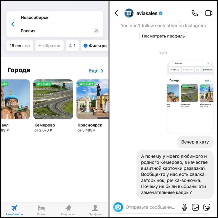 — Вечер в хату, Авиасейлс, поправьте обложку для Кемерово!