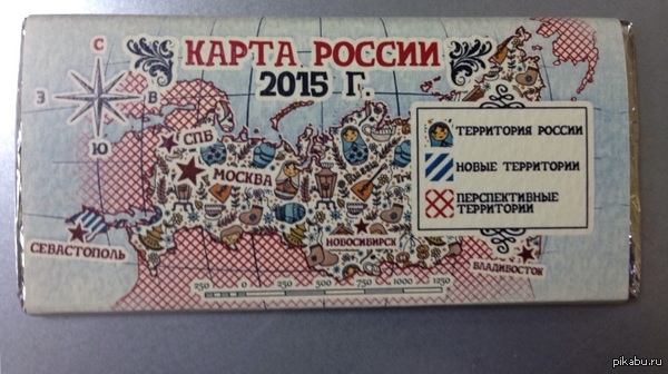 2 CoOre Шоколадка со вкусом политики 11 лет назад Шоколадка куплена в центре Москвы. Красная зона - перспективные территории. Синяя зона - новые территории. Снял на кружку. Отправил с коленки.) [моё] Политика Шоколад Троллинг