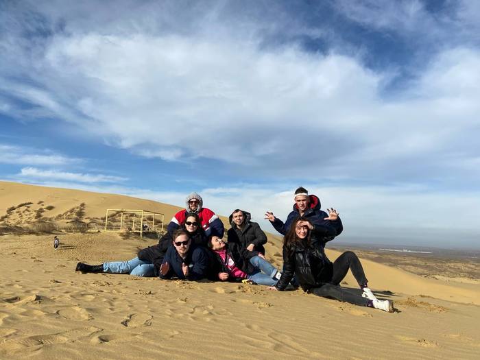 На подъезде к Махачкале находится пустыня. Вдруг, откуда не возьмись, появляется огромная гора песка. Сложно вообразить как он вообще мог там оказаться. Рядом нет ни намёка чтобы ему было место. Он отделён от пустынь. Ветра ни куда не уносят песок. Тем не менее он на своём месте. А мы, как туристы, стремимся оказаться на нем.