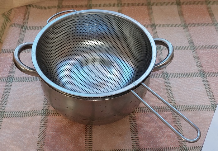 Извините, опять отвлёкся, так вот, чищу картофан, и тут взгляд мой падает на дуршлаг. Обычный дуршлаг из нержавейки, все три года со мной, как живу на квартире.