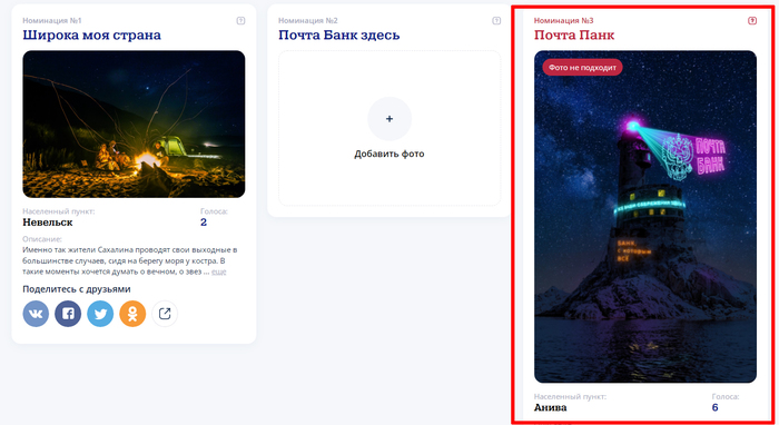 И да, я решила зайти через стеб, и таких работ там много: кто-то фотошопил гнилое замухрыжье с кибер вывесками почты банка и припиской типа: В России будущего все так же как и сейчас (и бомж какой-нить сидит под неоновыми вывесками). Ссылка на конкурс и номинацию Почта Панка