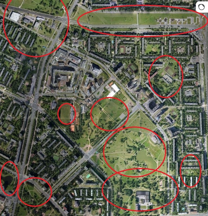 Во многих районах, и в ЖК очень много бесполезных голых газонов без засаженных деревьев, это называют "парками", парки и дворы должны быть как лес засажены деревьями максимально плотно с зеленью.