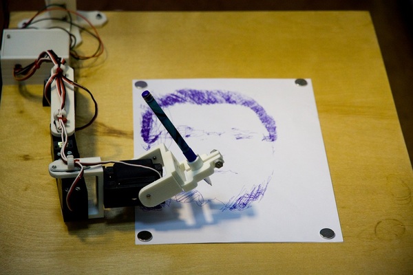 Причем это далеко не распечатка на принтере. Робот по-настоящему рисует портрет, рисунок каждый раз получается разным, в зависимости от мимики объекта, света и тени и многих других факторов.