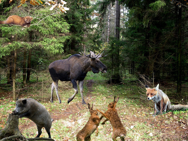 Я фотошоплю как кретин. Все смотрят битву зайцев, а кабан играет battle theme. Ну а сзади ёлочки-березки.