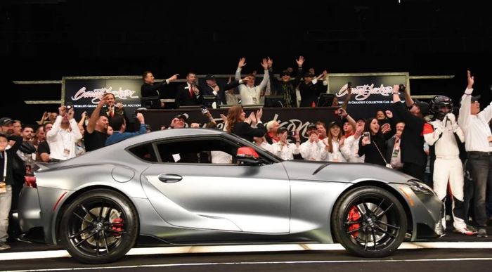 Работа на заводе уже кипит во всю и за ворота выкатился первый автомобиль с VIN-номером 001. В Тойота молодцы, решили немного хайпануть на новинке, ну и немного помочь нуждающимся. Отдали первенца на один из крупнейших американских аукционов Barrett-Jackson, где за машину бились богатые и успешные со скромным самомнением)