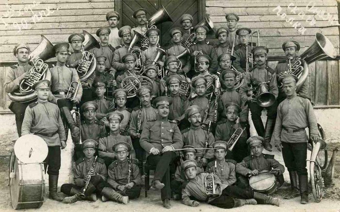 Итого в полковых оркестрах могло быть до 40 человек, при этом по штату было только 16-22 человека под присягой, а остальные - школьники.