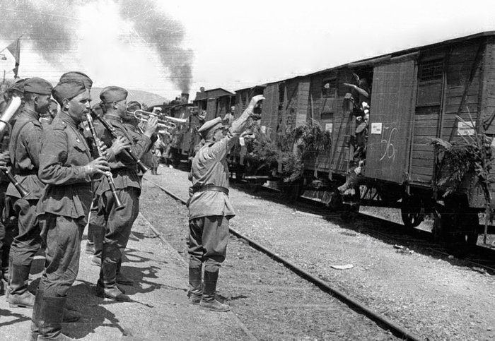 В годы Великой Отечественной войны военные оркестры выступали с концертами по радио и на передовой, поднимая боевой дух солдат. В репертуарах военных оркестров преобладали произведения отечественных композиторов, а также народная музыка, но основой репертуара оставались марши. В период Великой Отечественной войны военная музыка иногда использовалась и в боевых операциях (прорыв блокады Ленинграда, решающие штурмы в боях за населённые пункты и т.д.). Военные музыканты в первую очередь музыканты, но в штыковые атаки и им пришлось походить.