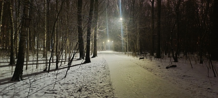 Приехал с работы, пошёл гулять с псом. Т.к. задержался - на улице кроме нас уже никого не было, и можно было посмотреть не по сторонам, в поисках бесповодочных собак, а более широко... И, внезапно, взгляду открылась красота.