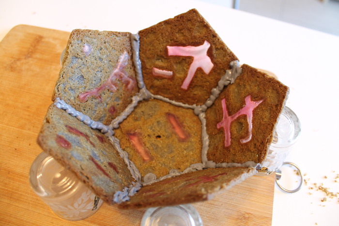 Для склеивания элементов я использовала окрашенный айсинг(сахарная глазурь). Сама сборка заняла продолжительное время, потому что глазурь долго высыхает. Чтобы вся конструкция не развалилась во время высыхания я использовала подручные средства.