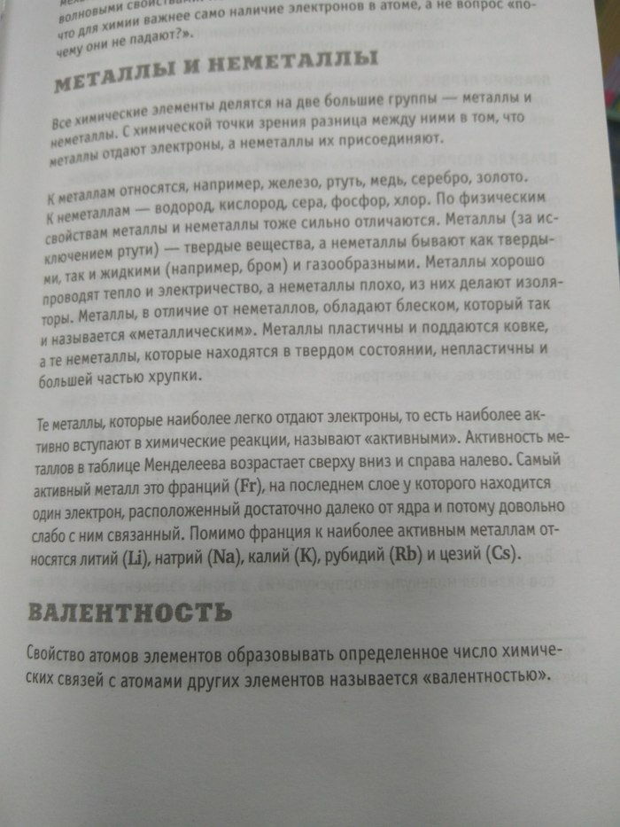 Определение валентности тоже порадовало. Свойство атомов образовывать химические связи с другими элементами — это скорее очень кривое определение химической активности. И вообще, исходя из данного определения следует, что у серы валентность шесть, у хлора — семь, а у водорода — два. Ну ведь способны же? Способны! А как тогда таким определением определять валелентности серы в тиосульфате?