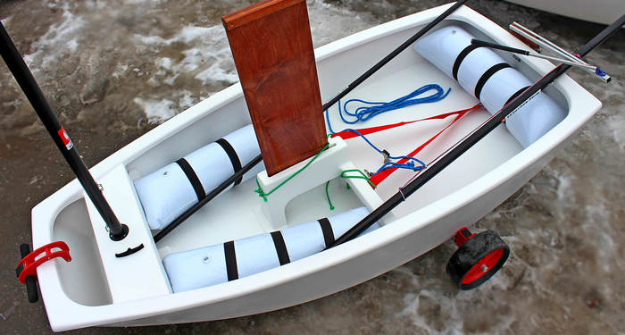 Размер оптимиста не большой, туда с легкостью поместится ученик от 1 класса до класса 6-7. Я уже не помню точно, все зависит от роста самого яхтсмена.