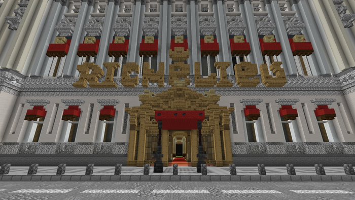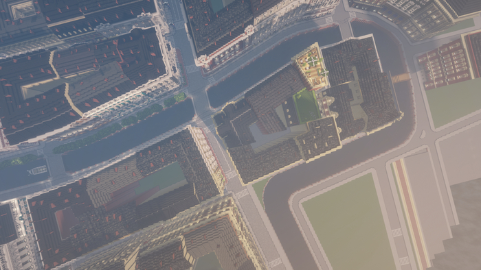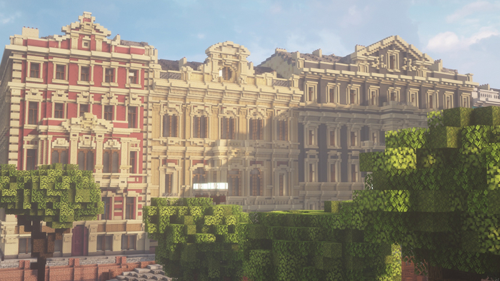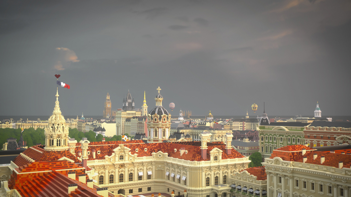 Здравствуйте. Представляю вашему вниманию необычный город в Minecraft, выполненный в классических стилях: барокко, классицизм, эклектика, неоготика, чикагская школа и др. Начал я его 12 февраля 2021 года: за прошедший год было построено почти 400 зданий. Благодаря увеличенному масштабу, каждое здание имеет высокое качество декоративного оформления и пышные украшения. В городе есть множество разных районов, отличающихся стилистикой и подражанием реальным городам. Например, есть Петербургский район - каналы и характерная для Северной столицы архитектура, ныне ещё недостроенный район с бельгийской архитектурой, французские кварталы и так далее.