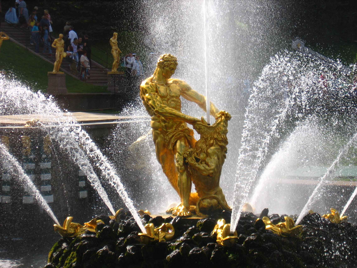 Парк украшает известный петергофский фонтан "Самсон раздирающий пасть льва".