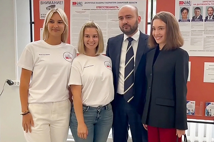 Вячеслав Федорищев с женой Александрой (справа) на избирательном участке в Самарском университете имени академика С.П. Королева, 2024 год
