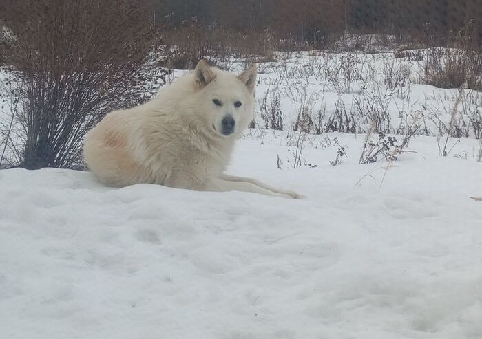 Он все время сидел то у одного окна кухни, то у другого. Из-за того, что снег высокий и плотный он мог подходить прямо вплотную к окну. Пришлось платить за охранные услуги свежим батоном и консервированной горбушей :)