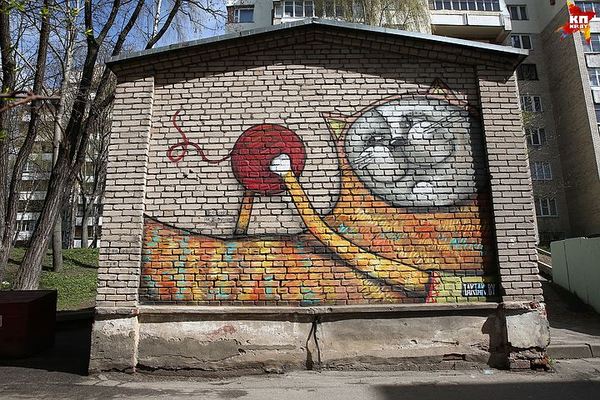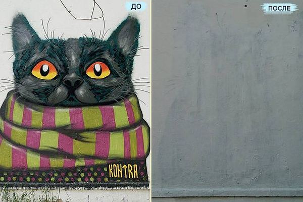 «Кот в шарфе» был стерт из-за обновления фасадов к 9 мая.