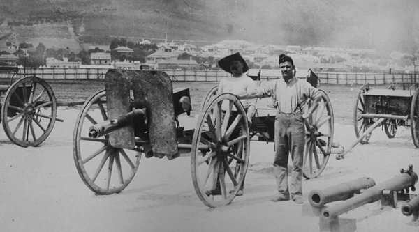 Одним из существеннейших недостатков, от которого страдала армия буров, это было право, дарованное Крюгером для каждого бюргера, пробывшего 1/4 года в строю, брать месячный отпуск, чем многие из них злоупотребляли во вред своему общему делу, так что за всё время сражалось их не более 30 000 человек против которых англичане выставили 250 000. Вооружение буров составляла винтовка Маузера (холодного оружия со- всем не имелось, благодаря чему все ночные атаки англичан были удачны), заряжавшаяся обоймой с 5-ю патронами; у не- которых же, за недостатком винтовок Маузера, Генри-Мартини и Штейра) – европейским добровольцам, кроме винтовок выдавались ещё револьверы [Веблей]). В походе буры держат винтовку за спиной, на рекогносцировке же или вблизи неприятеля – в правой руке поперёк седла. Для охранения лагеря выставляют за версту в стороне неприятеля брандвахты, состоящие из 20-ти человек каждая, которые уже от себя выставляют часовых и посылают разъезды для освещения местности. Артиллерия их, хотя и маленькая, но люди хорошо обучены. Они с поразительной верностью, без всяких приборов определяли расстояния, и снаряды, пущенные ими, вседа достигали своей цели. Впрягались в орудия мулы (5 или 6 пар), так как лошади страшно утомлялись.