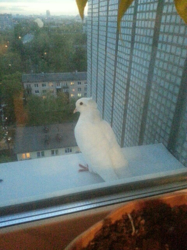 Г. Москва. Вот уже третий день голубь прилетает и ночует у нас на подоконнике. Голубь белый, есть кольцо на лапке. Мы его подкармливаем и даем попить. Говорят кто-то разворошил голубятню, у нас опыта с голубями нет ни какого, может кто-нибудь сможет его приютить. 8-906-752-11-91