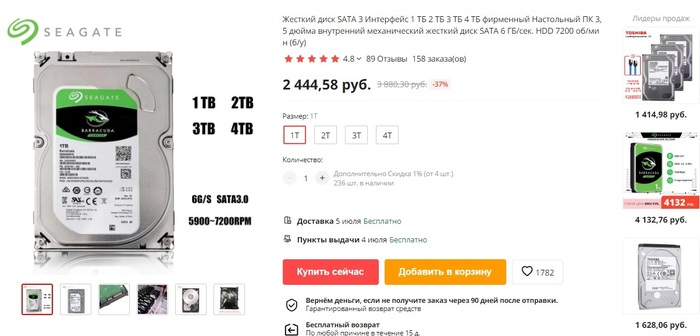 (средняя скорость 7200 оборотов обычная, не важна для простых задач)