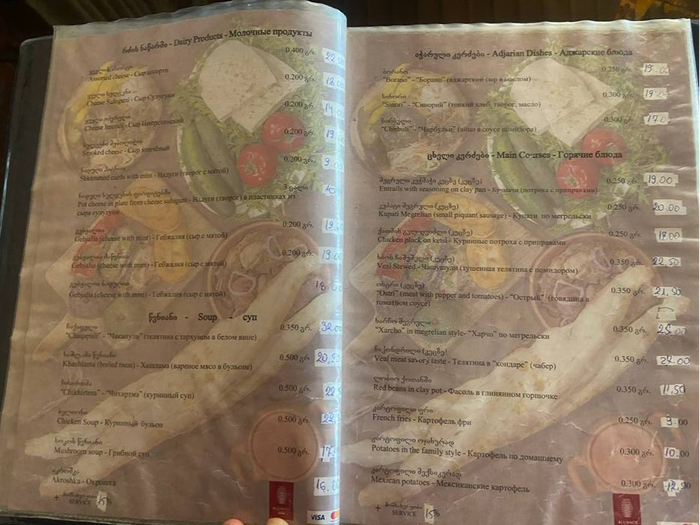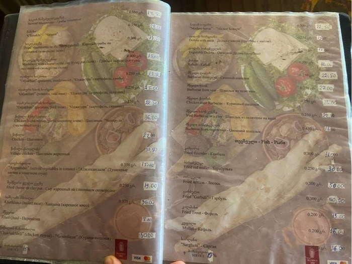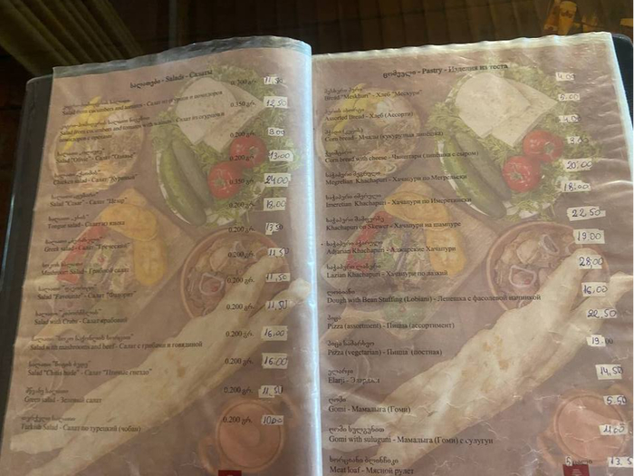 Выпить безалкогольного здесь нечего. Чай принесут пакетиком, лимонад в бутылке, одно расстройство. Заплатили вместе с сервисом и лимонадом мы 74 лари. Есть очень много мест, где на эти деньги можно поесть прям намного лучше.