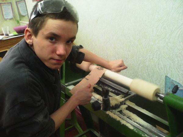 Ну и наконец мой третий помощник ,которого тоже зовут Александр ,с ним у нас отдельные творческие взаимопонимающие отношения парень очень увлеченный хорошо выжигает,делает мелкую работу,рисует,в общем полностью творческая личность,к сожалению из за особенности развития организма ему тяжело дается физическая работа,поэтому с ним мы в основном участвуем в конкурсах со своими поделками.
