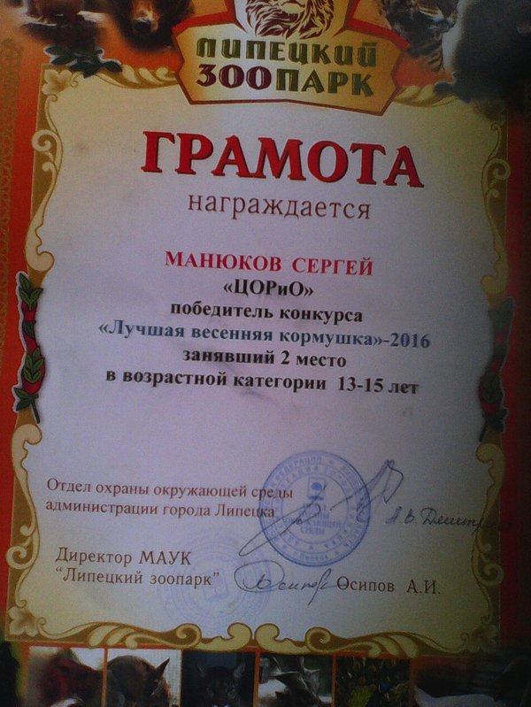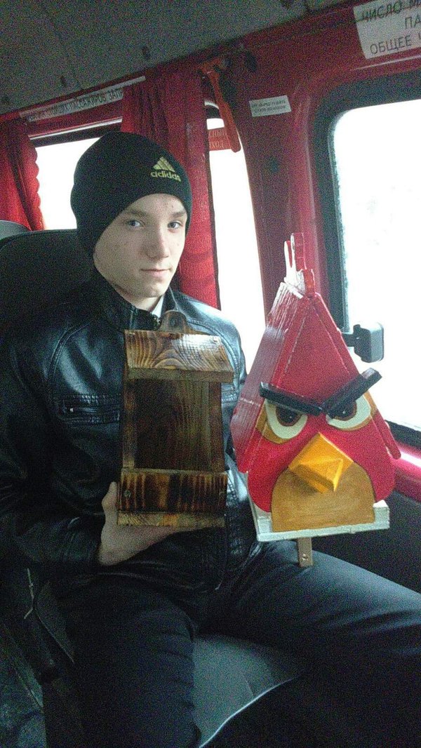 В этом году,буквально перед самыми каникулами,Сергей выиграл ,городской конкурс,на лучшую кормушку,для птиц,заняв 2 место