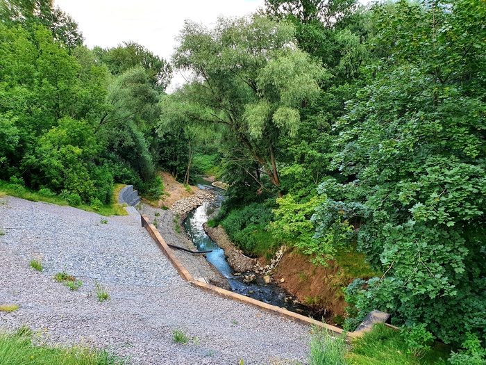 От аллеи поворачиваем налево и выходим к Севастопольскому проспекту. Он пересекает реку Котловку, мы же поворачиваем направо и отправляемся вдоль ее долины - памятника природы (точка 1 на второй карте). Она вполне облагорожена, в отличие от многих таких мест в Москве.