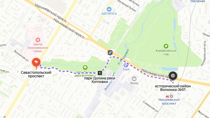 Вдоль Котловки доходим до Нахимовского проспекта и по нему до соответствующего метро.
