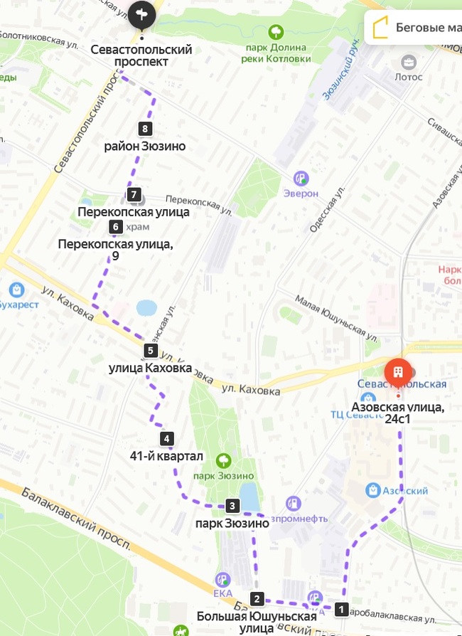 Выходим со станции метро "Севастопольская" (открыта в 1983 году, названа по расположению на юге Москвы в честь города Севастополь) через 11 выход и направляемся на юг по Азовской улице, названной в честь Азовского моря, в свою очередь. С перекрестка со Старобалаклавской улицей (точка 1 на первой карте в конце поста) обратим внимание налево, на новые ЖК в Чертаново.