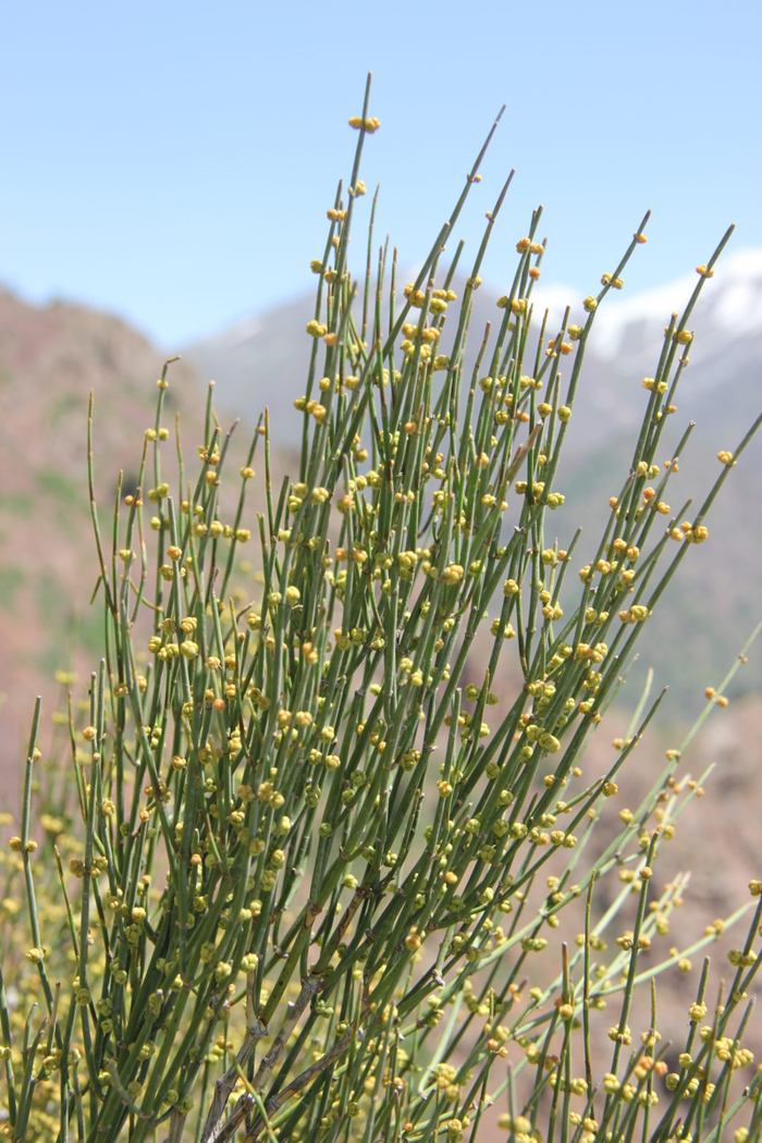 Эфедра — настоящий ксерофит, то есть растение, приспособленное к жизни в условиях дефицита влаги. Жить в пустынях, степях и на каменистых склонах — её стихия. Выживает она за счёт мощной корневой системы: центральный корень уходит вглубь, а от него в стороны расползаются придаточные. Интересная особенность эфедры — стеблепад: старые побеги отмирают, а новые формируются из упавших частей. Цветение происходит в мае, а в середине лета на побегах появляются мясистые шишкоягоды, некоторые из которых пригодны в пищу.