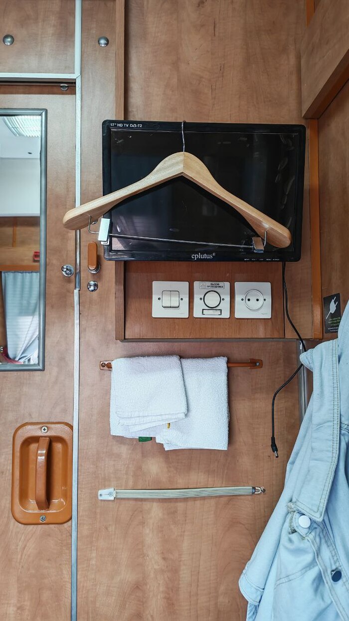 Окно в купе не открывается , я открыл окно в коридоре , открыл купе и все равно ужасно жарко и нечем дышать .
