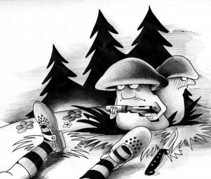 Съедобность грибов можно надежно определять с помощью будильника: если он разбудил вас утром, значит вчерашние грибы были съедобными.