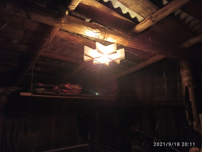 Находим в кладовке кусок провода с вилкой от какого-то прибора старого. Едем в хозмагазин за самым дешманским патроном и лампочкой 25 Ватт. Итого 47 рублей.