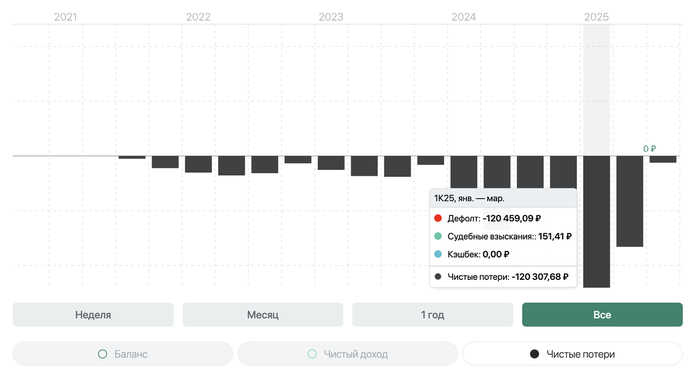 К слову, в 24-ом году, когда запахло жареным, мне позвонил менеджер и сказал: мы готовы компенсировать все ваши дефолты! Есть один нюанс: просто не выводите деньги.