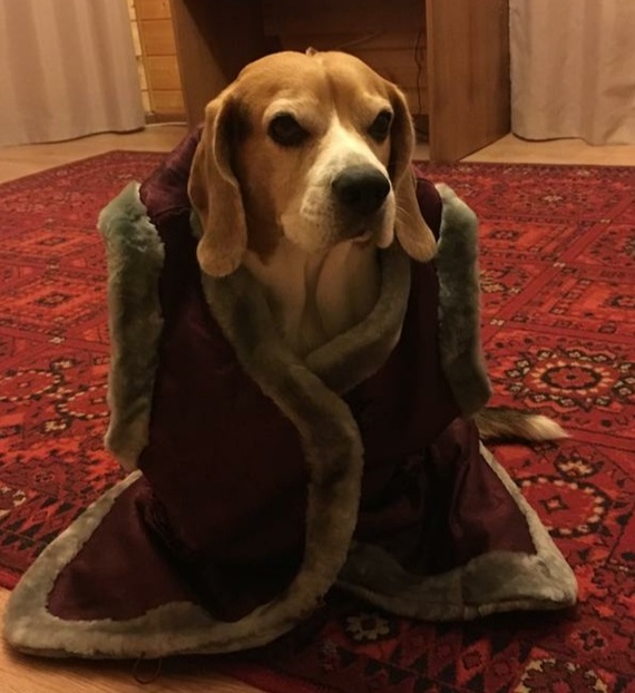 Там, заявив себе 48-й размер, я стал обладателем комплекта гражданской одежды, состоявшей из двух пар красных носков, голубых портов, атласной рубашки с таджикским орнаментом (красные ромбы по изумрудному полю) , песочного кримпленового костюма с рельефными хризантемами, галстука в фиолетовый горошек, шляпы в дырочку и синего плаща.
