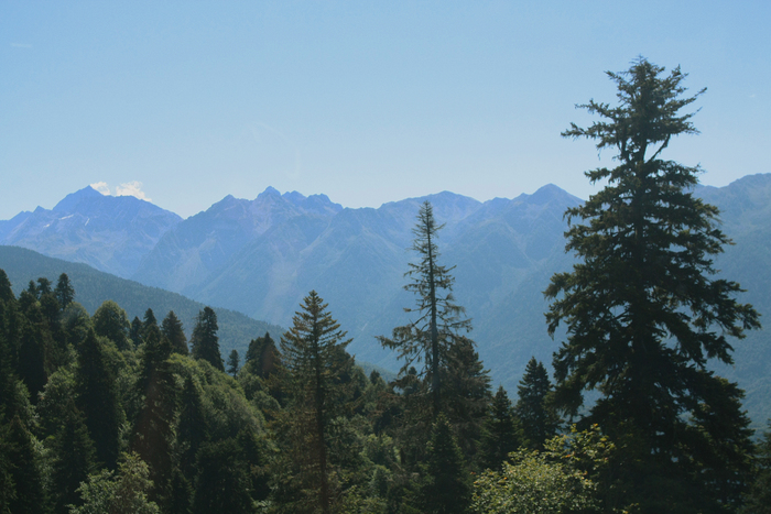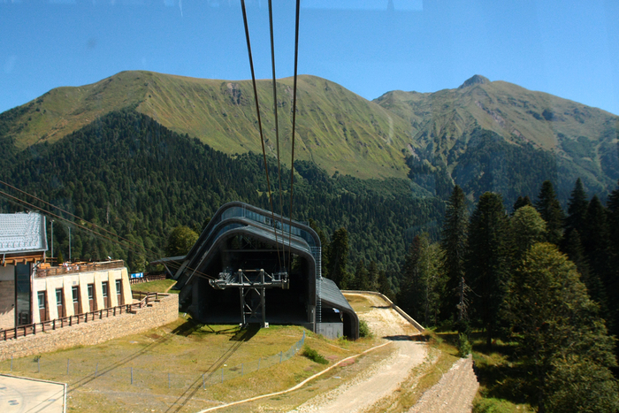 Канатная дорога, ведущая пешему пути до карниза, уникальна. Это самая длинная канатка маятникового типа в мире. Набор высоты 1110 метров, дорога ведет к Горному приюту "Пихтовый". От приюта пешочком в гору до карниза несколько км. Километров 5, если не ошибаюсь. Пара фоток из кабинки: